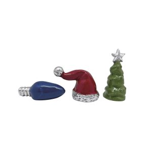Red Santa Hat, Green Tree, Blue Christmas Bulb Napkin Weight, Set of 3